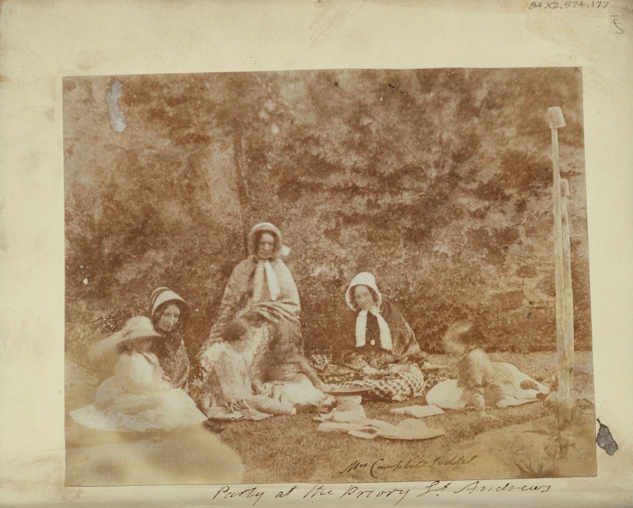 sepia · essen · fotografieren · picknick · 1800er · prärie · familie · damen · wald · hauben |
