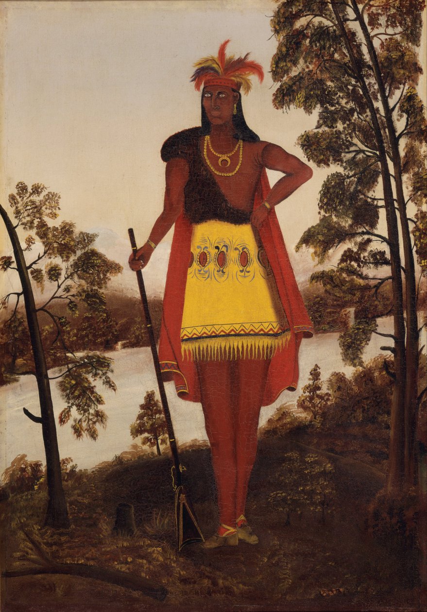 indianer · bäume · frau · gelb · stock · groß · schlank · pose · wasser · bäume · hersteller · unbekannt · amerikanisch · porträt · oneida · häuptling · Shikellamy |