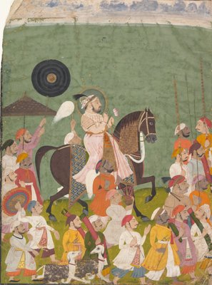 portrait · tier · leute · mann · mann · männer · tiere · gehen · pferde · pferd · jodhpur · rajasthan · indien · indisch · orange · anstrich · land · monarch · grün · kerl · museum · könig · königlich · position · jahrhundert · prozession · tinte · abgabe · zu pferde · begleiter · watercolour · farbe · getroffen · metropolitanmuseum der kunst · das metropolitanmuseum der kunst · orange farbe · 18. jahrhundert · achtzehntes jahrhundert · portrait · unknown · singh · processional · maharana · marwar · mewar · his majesty · heritage art · ink and opaque watercolor on paper · ink and opaque watercolor on paper · jagat singh ii · jagat · maharana jagat singh ii · Heritage Art/Heritage Images