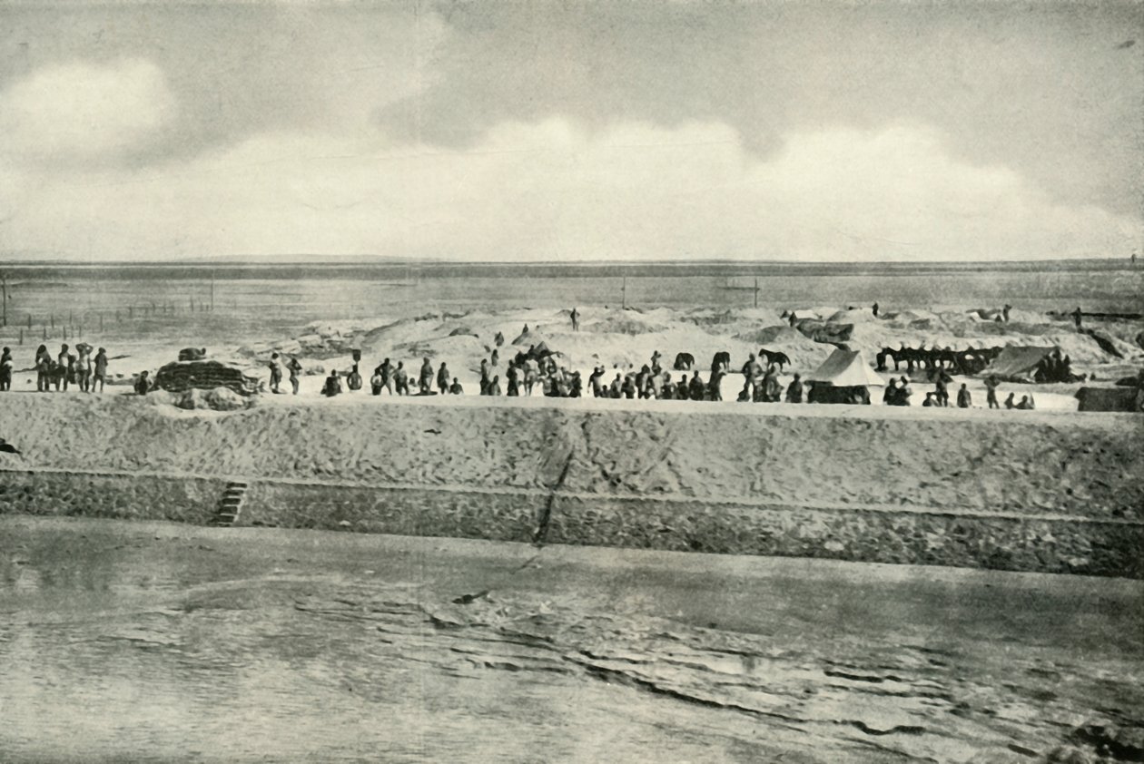 transport · transport · afrika · leute · mann · mann · männer · wüste · ägypten · kerl · kontinent · geographie · schützen · kanal · krieg · position · bewaffnete kräfte · jahrhundert · soldaten · soldat · erster weltkrieg · konzept · truppen · nordafrika · einfarbig · armee · kriegsführung · erster weltkrieg · wassertransport · suez kanal · schwarzes u. weiß · schwarzes und weiß · weltkrieg einer · 1910s · 20. jahrhundert · verbündete · photograph · unknown · knight · caxton publishing company · william stanley macbean knight · william stanley macbean · w. stanley macbean knight · w stanley macbean knight · w. stanley macbean · w stanley macbean · w. s. m. · w. s. m. knight · caxton pulishing company lim · The Print Collector/Heritage Images |