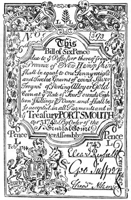 volkswirtschaft · land · geld · finanzierung · währung · papier · neu-england · position · jahrhundert · wirtschaft · banknote · einfarbig · banknote · vereinigte staaten von ameri · vereinigtes s · schwarzes u. weiß · schwarzes und weiß · 18. jahrhundert · achtzehntes jahrhundert · amerikanisch · amerika · engraving · unknown · edmund · edmund ollier · ollier · The Print Collector/Heritage Images