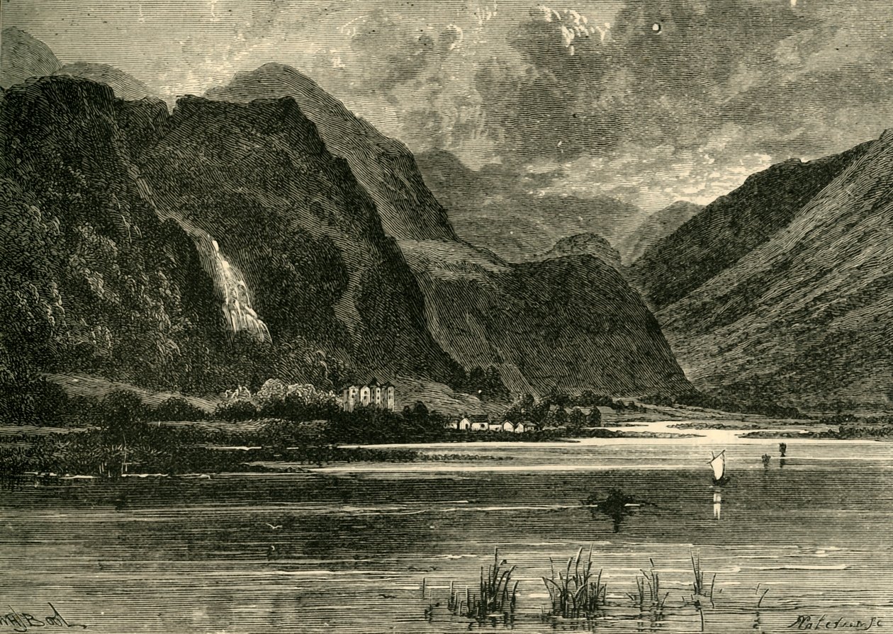 außen · draußen · szenisch · hügel · hügel · england · leute · künste · land · buch · britisch · geographie · derwentwater · cumbria · sebezirk · englisch · tranquility · tranquil · landschaft · position · jahrhundert · großbritannien · literatur · konzept · derwent wasser · stich · 19. jahrhundert · schwarzes u. weiß · schwarzes und weiß · hintergrundleute · 19.jahrhundert · engraving · landscape · unknown · cassells · cassell co · cassell and company ltd · cassell company · cassell · our own country · The Print Collector/Heritage Images |