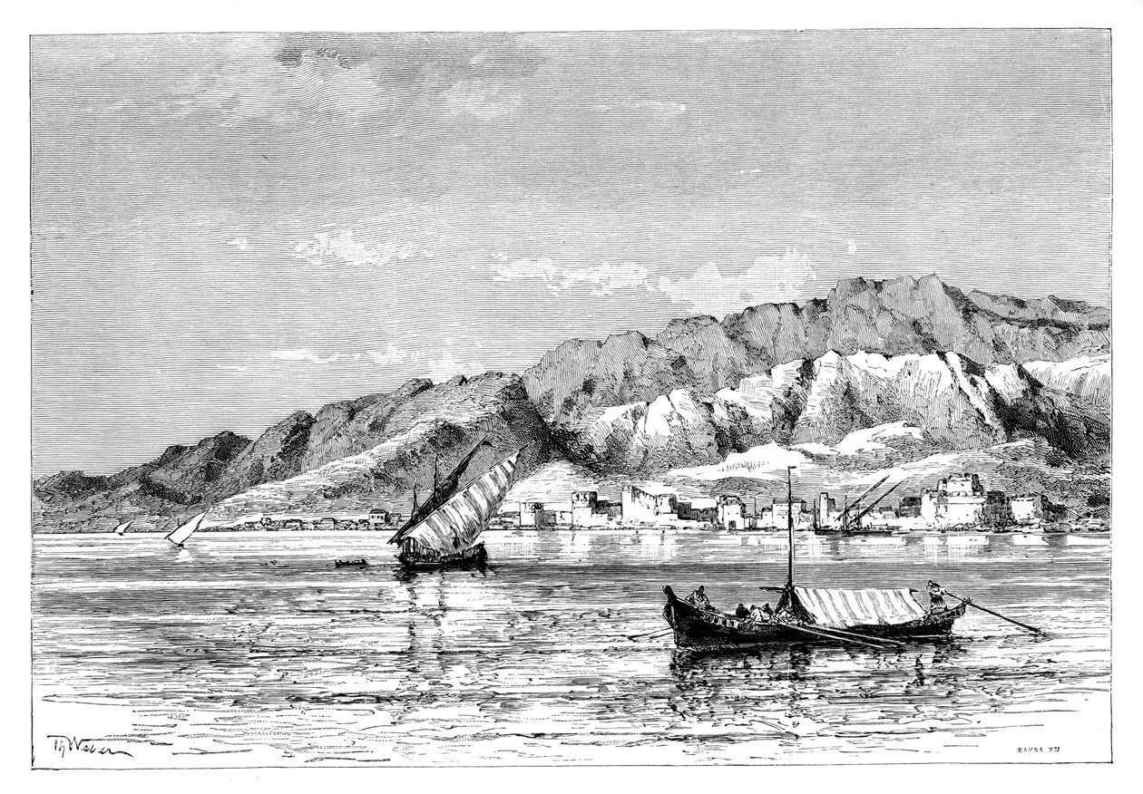 transport · transport · hügel · asiatisch · asien · segeln des bootes · boot · boote · küsten · land · hafen · kontinent · geographie · position · segelboot · jahrhundert · lastkahn · der iran · iranisch · einfarbig · stich · publikation · 19. jahrhundert · wassertransport · schwarzes u. weiß · schwarzes und weiß · persisch · persien · kleinasien · 19.jahrhundert · sailing barge · engraving · the universal geography with illustations and maps · bandar-e abbas · hormozgan · unknown · elisee reclus · reclus · elisee · virtue co. ltd. · The Print Collector/Heritage Images |