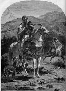 tier · leute · mann · mann · männer · reiten · mitfahrer · fußbekleidung · kerl · kostüm · korb · kleidung · aufladung · aufladungen · griechisch · kleid · griechenland · balkan · traditionelles kostüm · schlecht · armut · position · jahrhundert · rock · kleidung · esel · konzept · landarbeiter · landarbeiter · einfarbig · 19. jahrhundert · balkan · schwarzes u. weiß · schwarzes und weiß · nationales kostüm · 19.jahrhundert · engraving · unknown · robert · brown · robert brown · The Print Collector/Heritage Images |