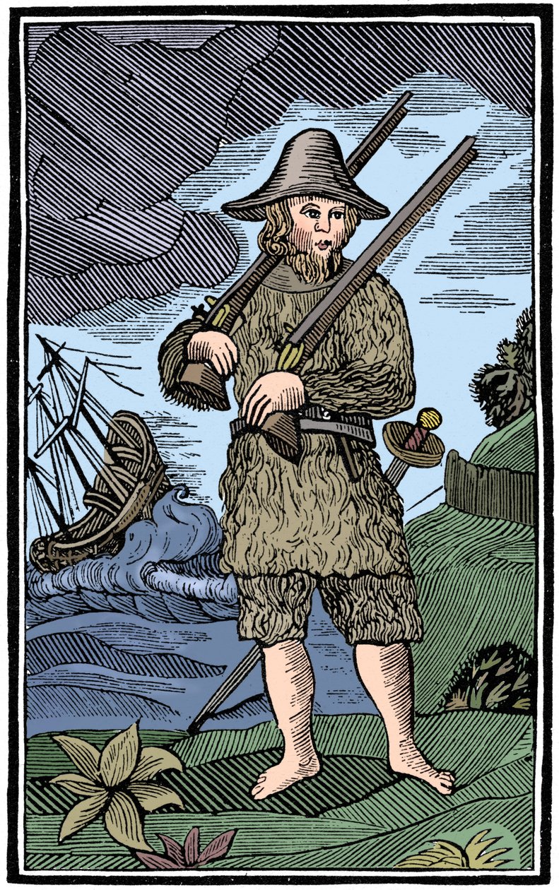 transport · transport · stehen · holding · leute · mann · mann · männer · künste · abenteuer · kerl · schiff · schiffe · insel · kleidung · britisch · waffe · waffen · gewehr · gewehren · farbe · farbe · überleben · kleid · krieg · position · jahrhundert · schiffswrack · wüste insel · großbritannien · alleine · angeschwemmt · literatur · konzept · druck · überlebender · kriegsführung · stich · segeln des schiffs · colourised · erfindung · sechziger · marooned · fiktiver buchstabe · wassertransport · kampfmittel · sechziger jahre · 18. jahrhundert · 20. jahrhundert · achtzehntes jahrhundert · ruiniert · daniel · portrait · woodcut · anon · anonymous · daniel defoe · defoe · bliss · douglas percy bliss · douglas percy · colorised · The Print Collector/Heritage Images |