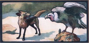 Dressierte Haustiere: ein Hund und ein Hahn tanzen auf Stelzen im Rhythmus der Trommel. Gravur aus einem Manuskript von 1344 aus der Bodleian Library in Oxford(Pets trained: a dog and a rooster dance on stills to the rhythm of the drum. Engraving from a 1344 manuscript from the Bodleyan library of Oxford.)Unknown artist |
