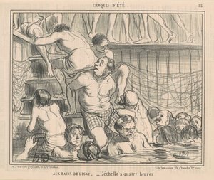 Das Bad: Karikatur der öffentlichen Bäder (Schwimmbäder) in Paris - 19. Jahrhundert, Carnavalet(The bath: caricature of public baths (swimming pools) in Paris - 19th century, Carnavalet.)Unknown artist |