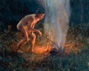 Siegfried, der dem Drachen Fafner gegenübersteht, schwingt sein Schwert. Szene aus der Oper „Der Ring des Nibelungen“ von Richard Wagner (1813 - 1883). Gemälde.(Siegfried, facing the dragon Fafner, waved his sword. Stage of the Opera “” Ring of the Nibelungen”” by Richard Wagner (1813 - 1883). Painting.)Unknown artist |