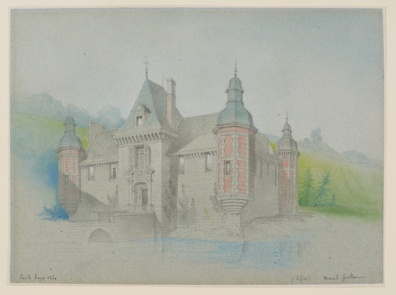 19. jahrhundert · architektur · kunst · landschaft · schloss · farbe · zeichnung · landschaft · brücke · niemand · turm · außenansicht (gebäude) · pastell · mz-zeichnung · Sterling and Francine Clark Art Institute, Williamstown, Massachusetts, USA / Bridgeman Images |