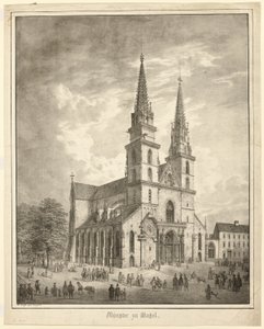 Außenansicht der Kathedrale Notre Dame in Konstanz, Deutschland. Gravur in „The Universe illustrious“(Exterior view of the Notre Dame Cathedral in Constance, Germany. Engraving in “The Universe illustrious”)Unknown artist |