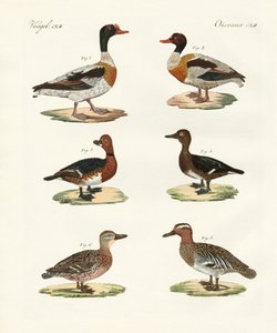 a: Saatgans (Asner segetum), b: Ringelgans (Branta bernicla), c: Eiderente (Somateria mollissima), d: Harlekinente (Histrionicus torquatus), e: Trauerente (Oidemia fusca), f: Stockente (Anas boschas), g: Belons Tadorne (Adorna cornuta), h: Spießente (Dafil(a: Seed Goose (Asner segetum), b: Brant (Branta bernicla), c: Common Eider (Somateria mollissima), d: Harlequin Duck (Histrionicus torquatus), e: Black Duck (Oidemia fusca), f: Mallard (Anas boschas), g: Belon's Tadone (Adorna cornuta), h: Pintail (Dafila )Unknown artist |