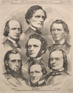 Porträt von William Ewart Gladstone, John Bright, Lord Stanley, John Stuart Mill und Benjamin Disraeli - in „Les Contemporains“(Portrait of William Ewart Gladstone, John Bright, Lord Stanley, John Stuart Mill and Benjamin Disraeli - in “” The Contemporains”, n.d. late 19th century.)Unknown artist |