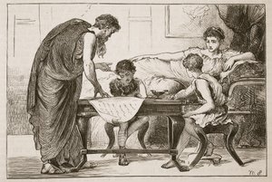 gravur · schwarz und weiß · gravur · mensch · freizeit · fest · römisches reich · antikes rom · essen · könig · party · 1. 1. 1. jahrhundert · antiquit · bianchetticor · Private Collection / Bridgeman Images |