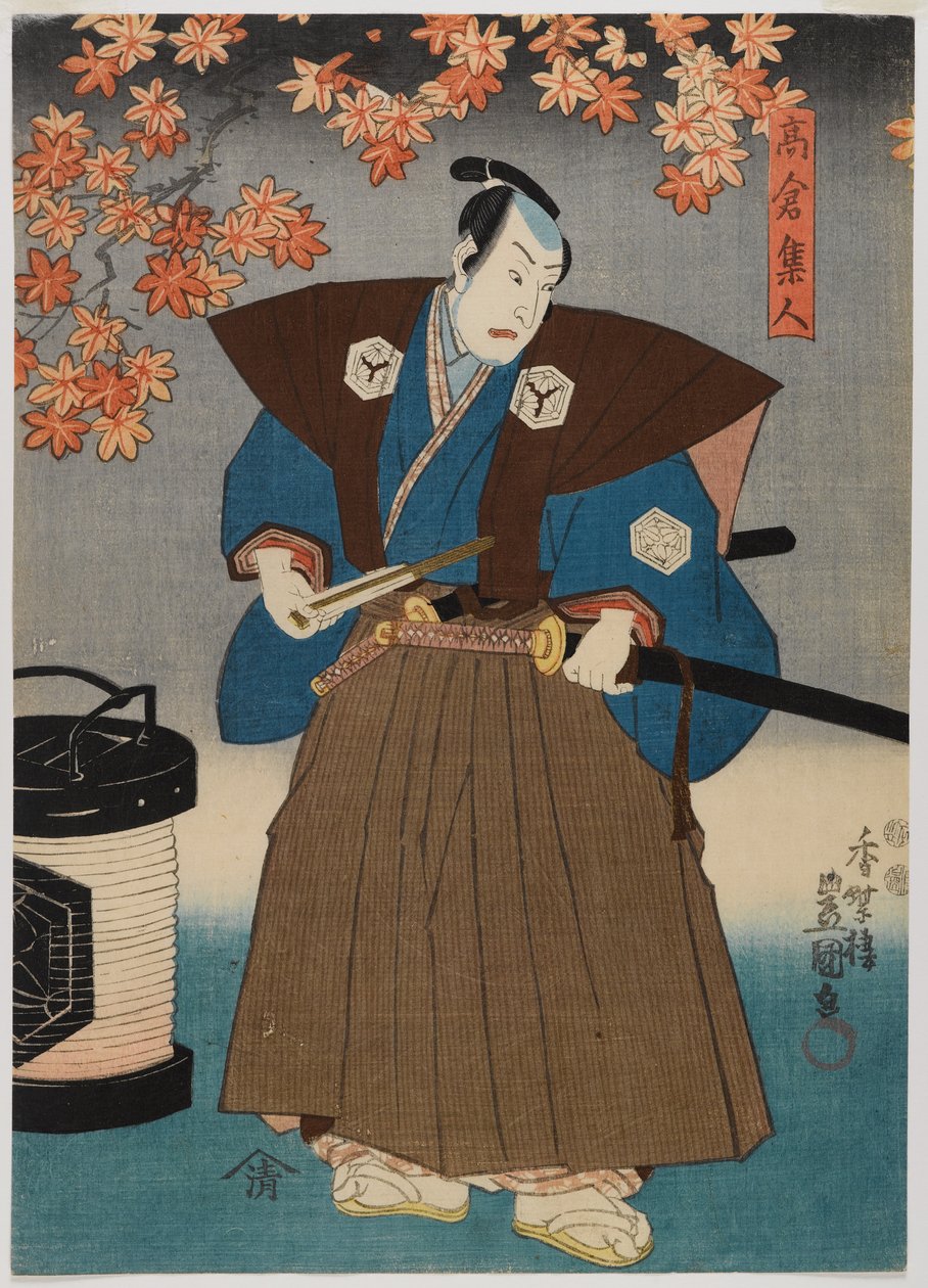 darsteller · männlich · asiatisch · künstler · blätter · laterne · schwert · krieger · theater · theatralisch · Brooklyn Museum of Art, New York, USA / Bridgeman Images |