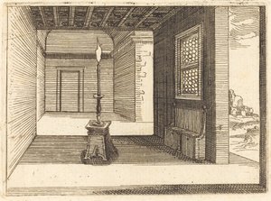 Erloschene Kerze vor einem offenen Fenster(Uitgedoofde kaars voor een open raam)Vincent Laurensz. van der Vinne (II)(print maker) |