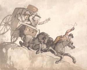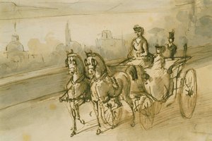 Landauer. Kutscher mit dreieckigem Hut, Herrschaft und Diener(Landauer. Kusk med trekantet hat, herskab og tjener)Wilhelm Marstrand |