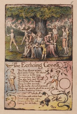 Das Echoing Green: Platte 6 aus 'Songs of Innocence and of Experience' (Kopie AA) ca. 1815-26(P.125-1950.pt6 The Echoing Green: plate 6 from 'Songs of Innocence and of Experience' (copy AA) c.1815-26 (etching, ink and wc))William Blake |