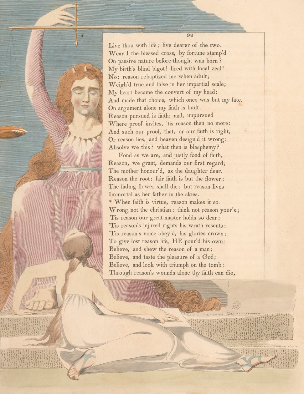 Youngs Nachtgedanken, Seite 92, Wenn der Glaube Tugend ist, macht die Vernunft es so(Youngs Night Thoughts, Page 92, When Faith Is Virtue, Reason Makes It So)William Blake |