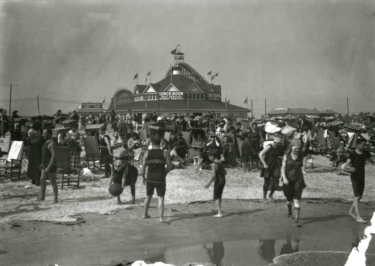 strand · new york · new york city · manhattan · amerikanisch · amerika · vereinigte staaten von amerika · vereinigte staaten · fotografie · die architektur · 1910er jahre · coney island · freizeit · sommer · sommer · jahreszeiten · entspannung · badende · baden · menge · massen · überfüllt · urlaub · urlaub · mittagessen räume · esszimmer · spaß · Strand · Collection of the New-York Historical Society, USA / Bridgeman Images |