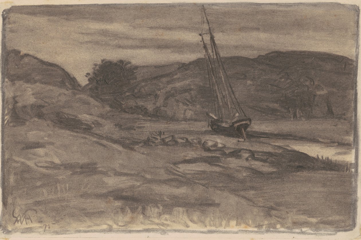 zeichnen · studium · barbizon · amerikaner · amerika · vereinigte staaten · landschaft · boot · ufer · grund · Segeln · Corcoran Collection, National Gallery of Art, Washington D.C., USA / Bridgeman Images