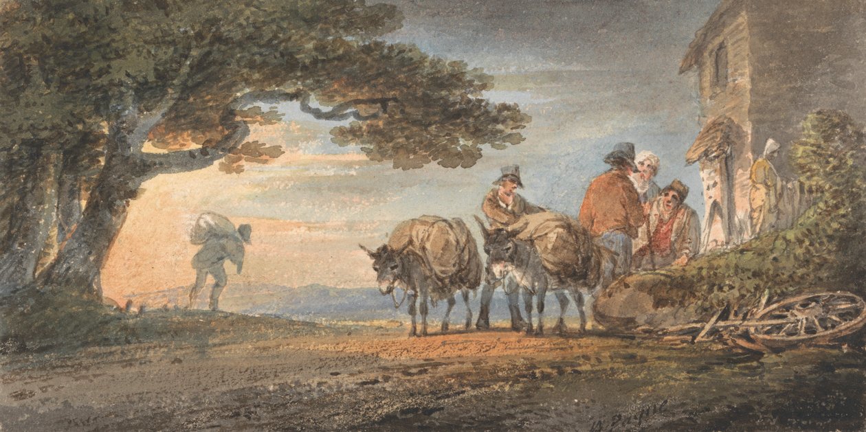 Fahrer und Esel ruhen sich bei Sonnenuntergang aus(Drivers and Burros Resting at Sunset)William Payne |