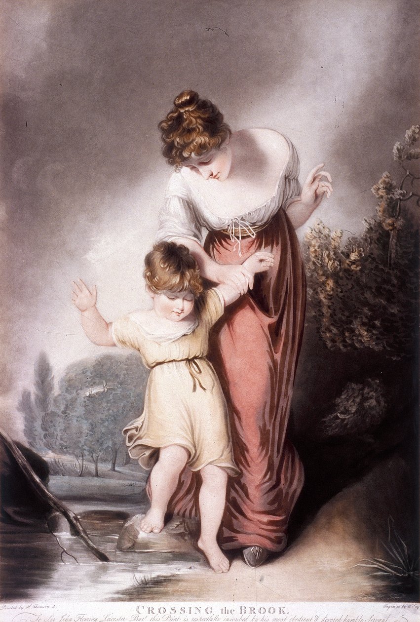 wasser · frau · frauen · frau · leute · mann · junge · jungen · kind · kinder · strom · familie · farbe · farbe · mutter · kleid · mutterschaft · jahrhundert · elternschaft · mütterlich · führer · dame · konzept · anleitung · sentimental · bach · metapher · mama · tretenstein · 19. jahrhundert · 19.jahrhundert · guildhall library art gallery · mezzotint · henry · william say · henry thomson · thomson · william · Guildhall Art Gallery (City of London)/Heritage Images |