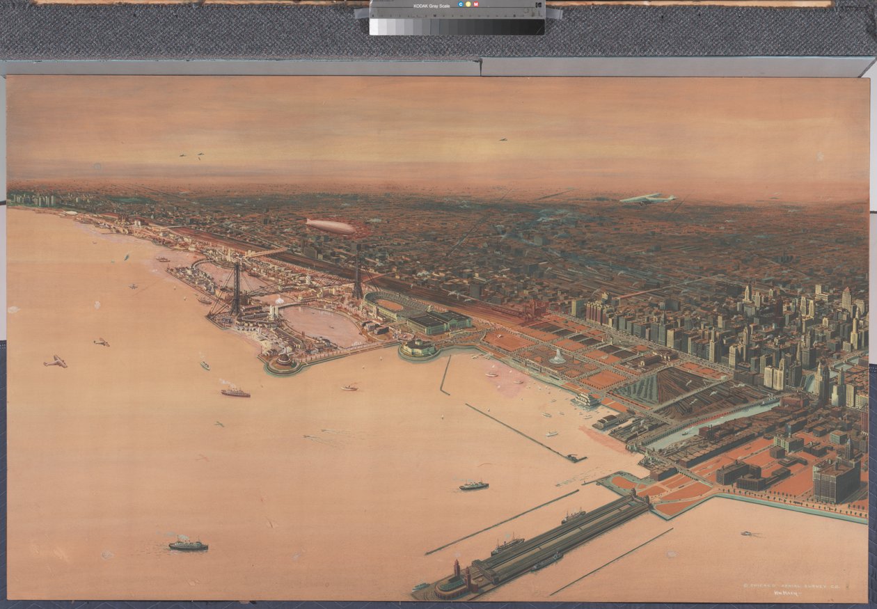 hafen · stadt · mittelwesten · innenstadt · wolkenkratzer · flugzeuge · nordamerika · modern · antenne · gebäude · amerikanisch · amerika · ufer · stadtbild · michigan see · panorama · illinois · jachthafen · vogelperspektive · Chicago History Museum, USA / Bridgeman Images |