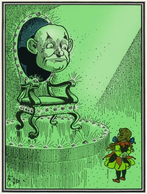 Der Zauberer von Oz: Dorothee (Dorothy) ist in der Königlichen Halle der Smaragdstadt vor dem Zauberer von Oz. Illustration von William Wallace Denslow (1856-1915) für Frank Lyman Baums Geschichte „Der Zauberer von Oz“ (1856-1919)(The Wizard of Oz: Dorothee (Dorothy) is in the Royal Hall of the Emerald Cite in front of the Wizard of Oz. Illustration by William Wallace Denslow (1856-1915) for Frank Lyman Baum's story “The Wizard of Oz” (1856-1919))William Wallace Denslow |