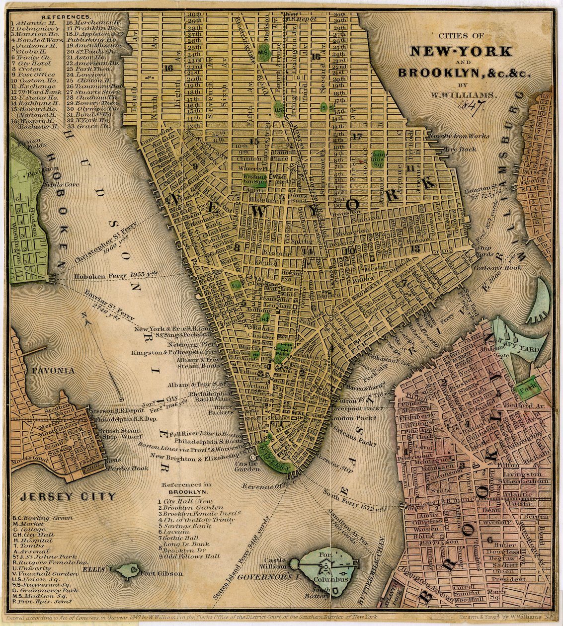 Städte New-York und Brooklyn, um 1847(Cities of New-York and Brooklyn, undc. undc., 1847 (black and colour ink on paper, backed with paper))William Williams |