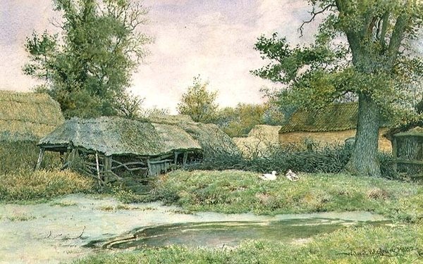 Bauernhof mit Ententeich und Enten(Farmyard with duck pond and ducks)Wilmot R.W.S. Pilsbury |