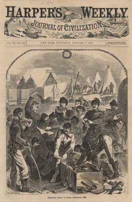 Weihnachtsboxen im Lager, aus Harper(Christmas Boxes in Camp, from Harper)Winslow Homer |