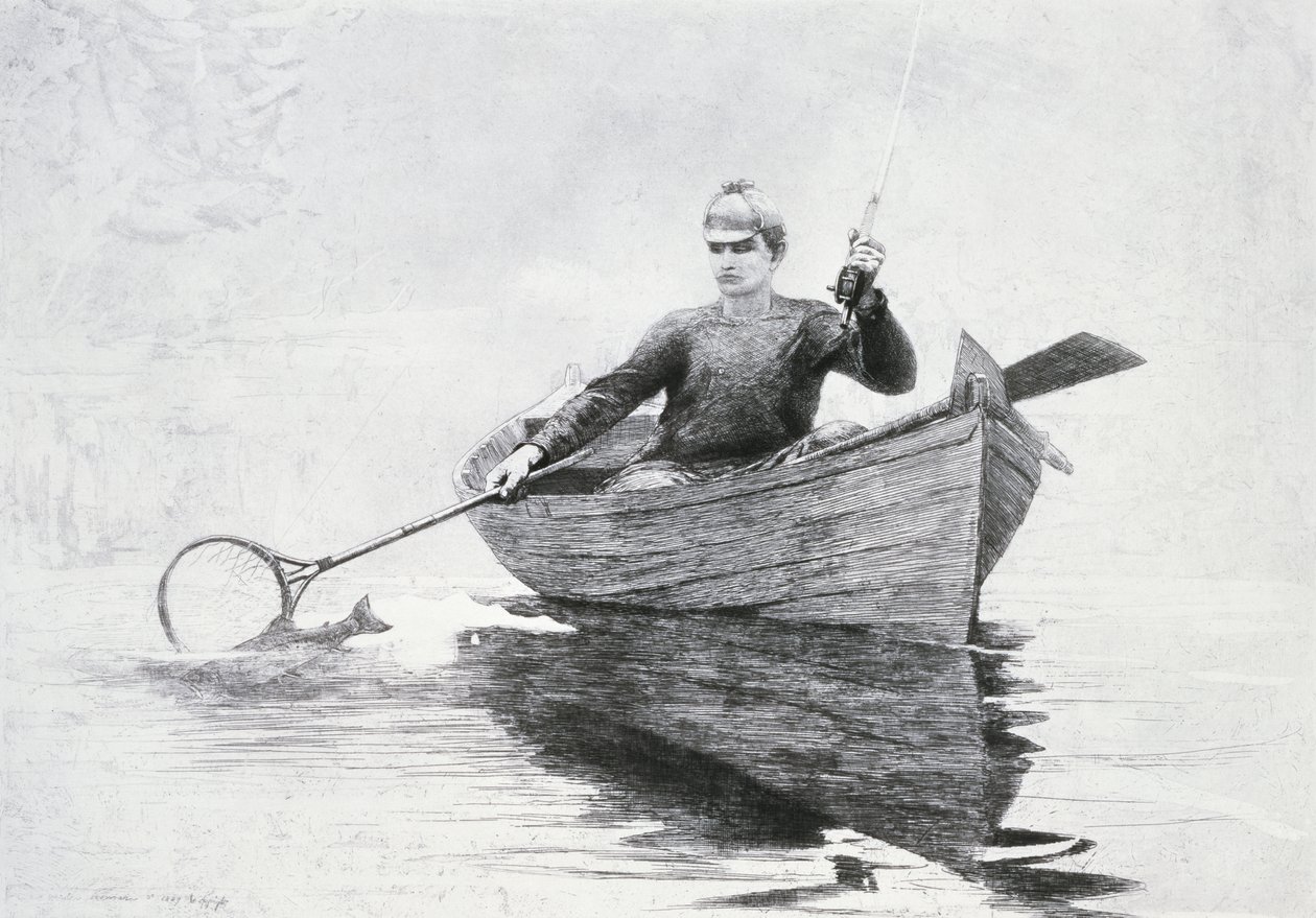 Fliegenfischen am Saranac-See, 1889(Fly Fishing on Saranac Lake, 1889 (etching and aquatint on simili-Japan paper))Winslow Homer |