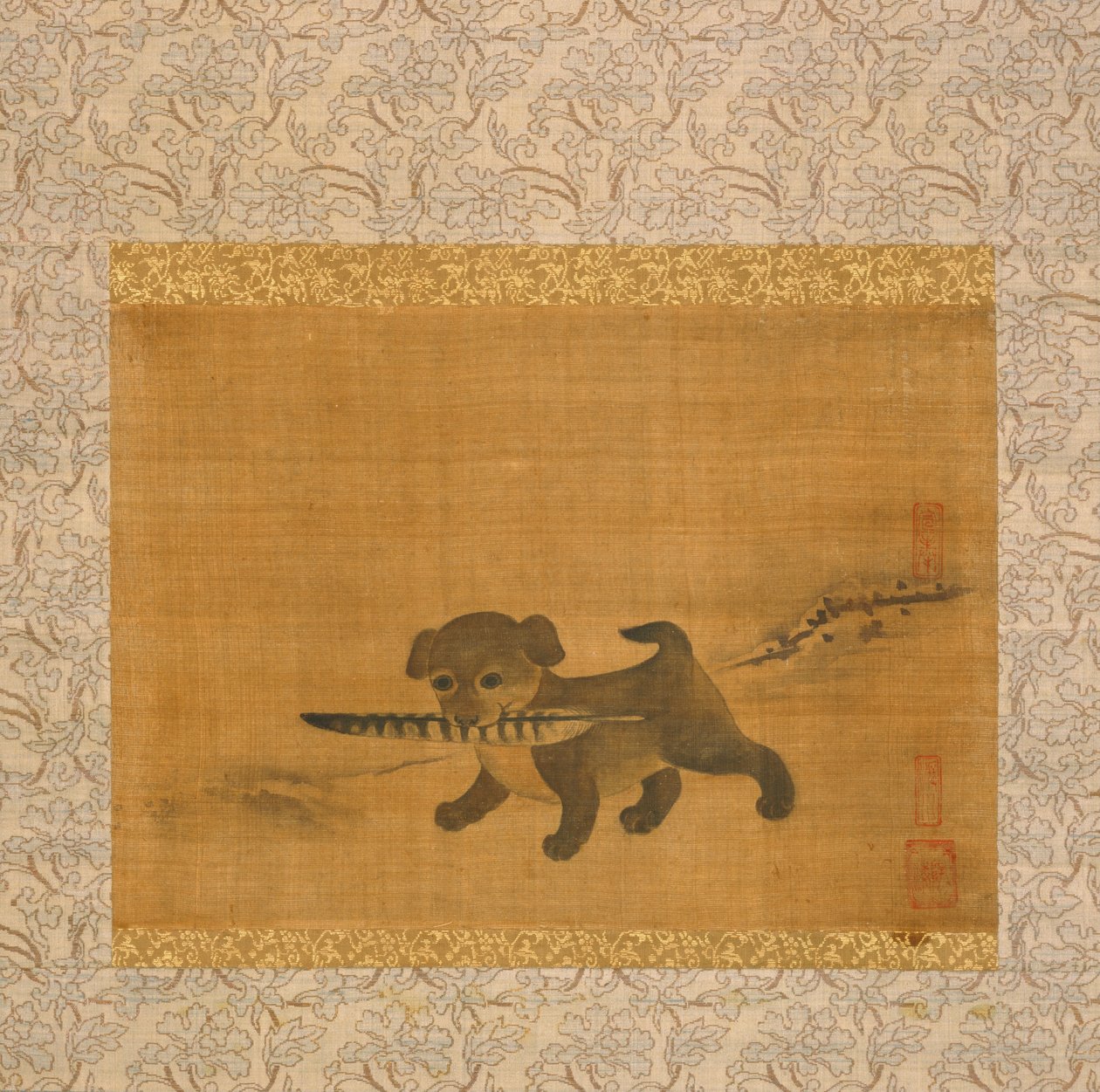 Welpe spielt mit einer Fasanenfeder(Puppy Playing with a Pheasant Feather)Yi Am |