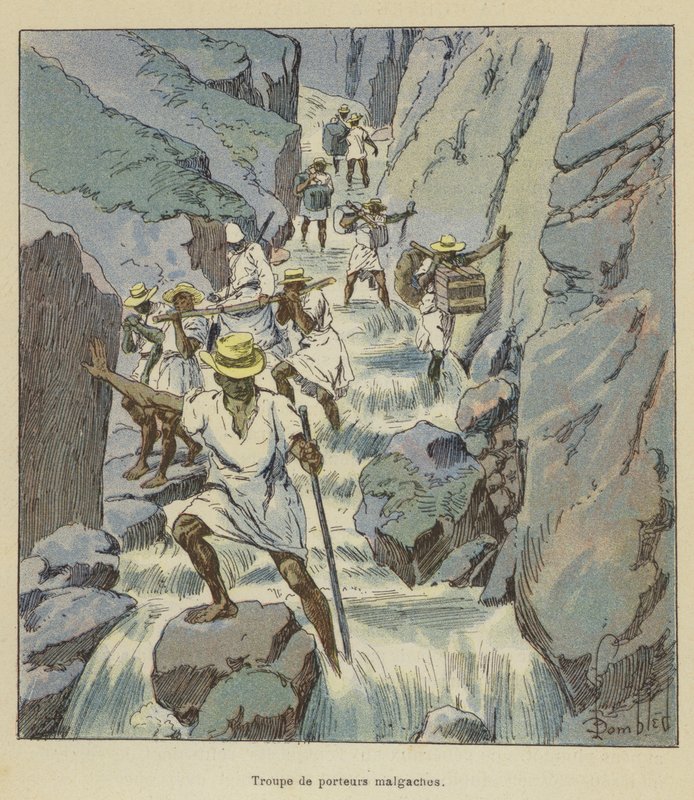 Gruppe madagassischer Träger(Troupe de porteurs malgaches )after Louis Charles Bombled |