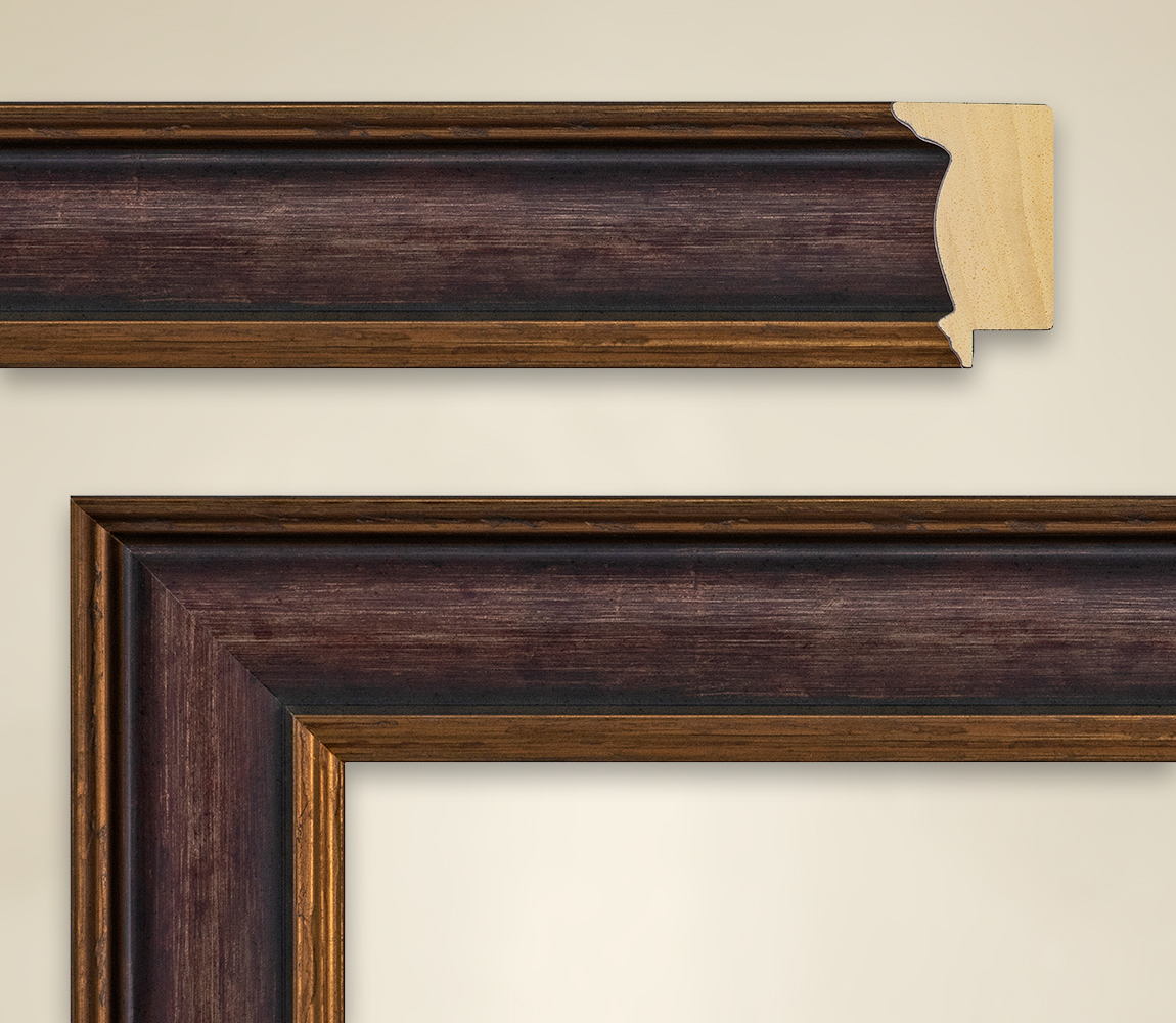 Ein durch und durch edler Rahmen, der auch ein edler Tropfen sein könnte, wäre er kein Echtholzrahmen. Denn seine Farbgebung in Burgunderrot lässt diese Assoziation zu. Der Bilderrahmen Gisela wird aber nicht nur Weinliebhaber begeistern, denn durch seine Eigenschaft, jeglichem Kunstdruck einen würdigen Rahmen zu verleihen, wird er auch jeden Kunstfreund überzeugen. Die Maße sind in der Breite 49 Millimeter und in der Höhe 31 Millimeter. In der Breite teilt sich der Rahmen in drei verschiedene Bereiche ein. Am oberen und am unteren Abschluss sind jeweils Ensembles von schmalen Leisten verarbeitet. Diese scheinen selbst der Rahmen für den mittleren Teil zu sein, der wiederum eine leicht nach außen gewölbte Ebene darstellt. Dieser Mittelteil ist in besagtem Burgunderrot gehalten, wobei eine leichte Holzstruktur eingearbeitet ist. Jeweils nach außen und innen hin verdunkelt sich der Ton und endet in einem Schwarz, wie die Neige eines guten Rotweinglases. Einen herrlichen Kontrast hierzu bilden die Außenleisten, die in einem rötlichen Gold den Abschluss bilden.